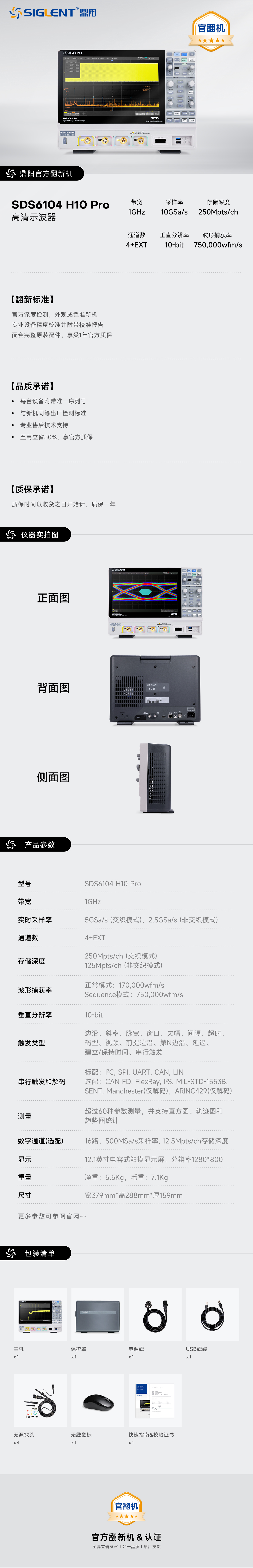 已选1件商品:鼎阳官翻机 SDS6104 H10 PRO 高分辨率示波器