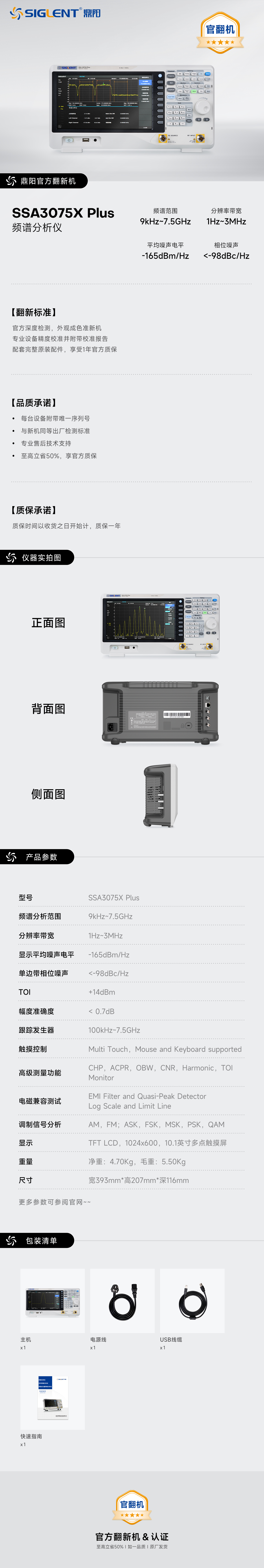鼎阳官翻机 SSA3075X PLUS 频谱分析仪