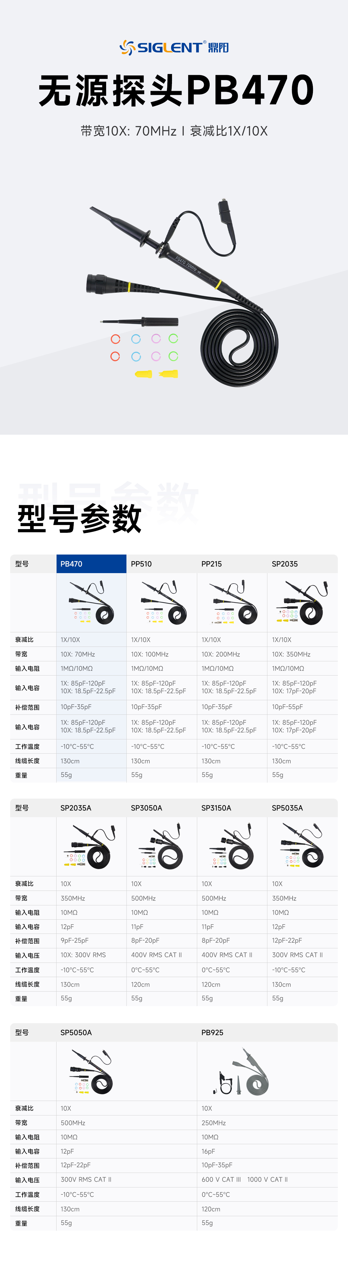 70-M-带宽; 1X/10X转换无源探头测试链接