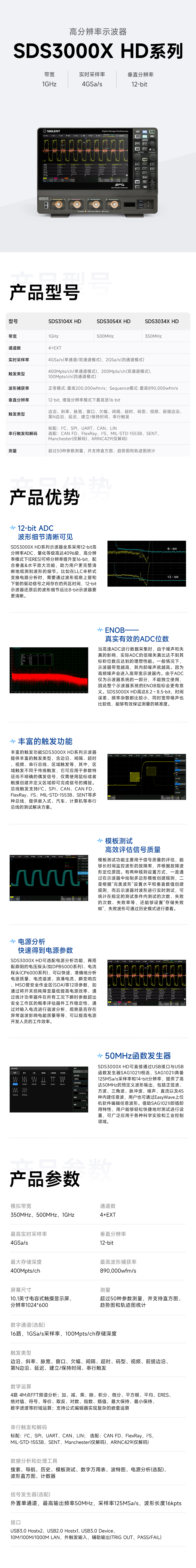 适用于SDS3000X HD, SDS2000X HD, SDS1000X HD示波器